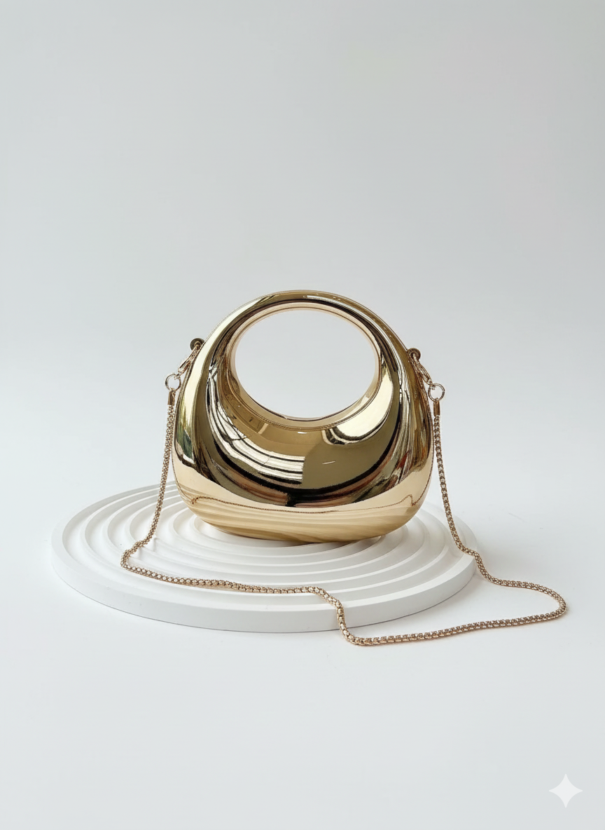 Elevate your evening look with the Mini Golden Clutch. This architectural masterpiece features a high-shine...