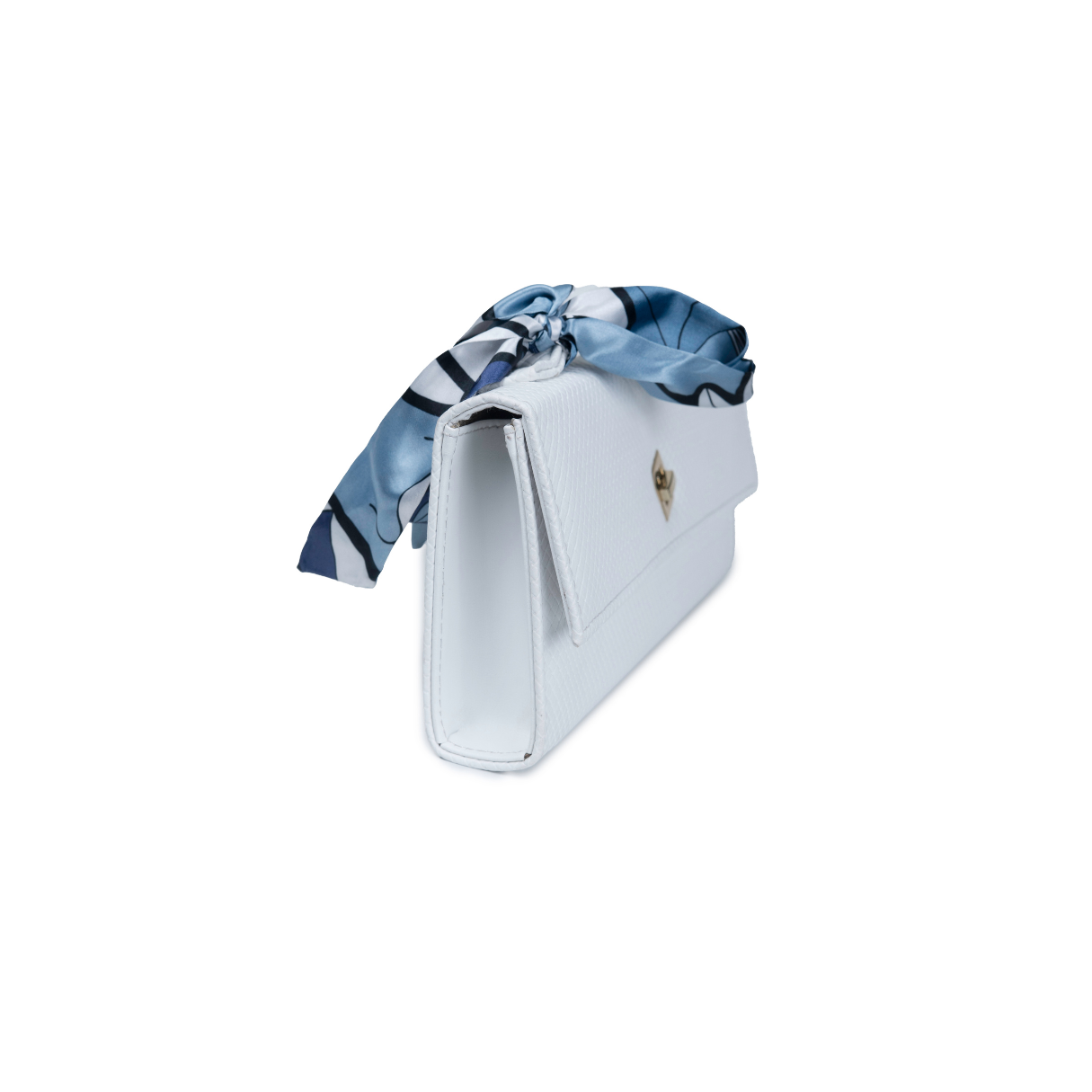 The structured silhouette is softened by a delicately knotted scarf, introducing fluidity and movement against the clutch’s architectural form. Finished with a polished metal lock and a sculpted top handle, LOOM is designed to be carried with ease and confidence.